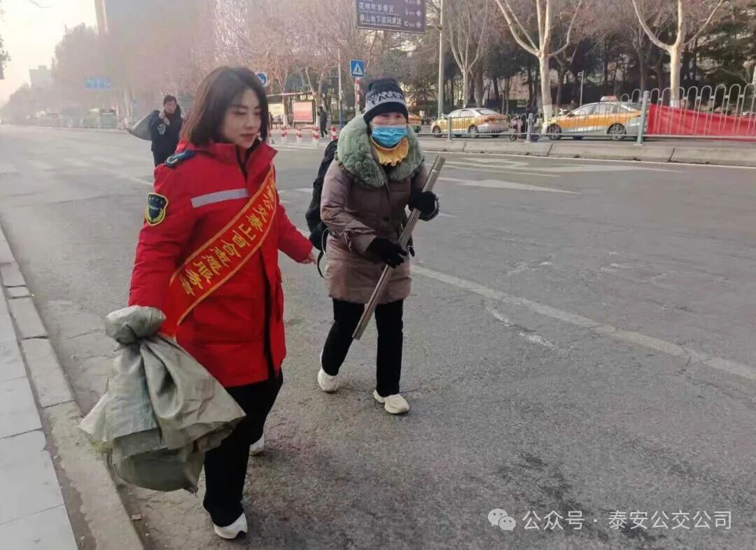 在小井公交樞紐附設(shè)站,身著紅色“泰山百合”馬甲、佩戴志愿服務(wù)綬帶的志愿者們迅速投入工作,有序開展便民服務(wù)。在公交車??繀^(qū)域,志愿者主動(dòng)引導(dǎo)駕駛員規(guī)范進(jìn)站、有序???,保障車輛進(jìn)出站安全順暢;在候車區(qū)域,志愿者們耐心解答乘客出行咨詢,重點(diǎn)關(guān)注老年乘客等特殊群體,主動(dòng)攙扶其上下車,細(xì)致講解上下車安全、扶手抓握、特殊天氣防護(hù)等乘車攻略。同時(shí),志愿者們向過往市民發(fā)放綠色公交出行宣傳冊,積極倡導(dǎo)低碳環(huán)保、文明出行理念,為有換乘需求的乘客精準(zhǔn)規(guī)劃最優(yōu)路線,用貼心指引讓寒冷冬日充滿溫情。